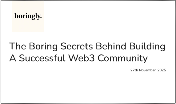 I write this while I have been in the middle of writing for another topic on Boringly, when I received a call from a Friend building a good vc funded product but struggling to create a community. Having built strong communities for the past 8 years, I was able to give him a playbook over a 10 minute call and realised it deserved a spot on Boringly, with criticisms and feedback welcomed ofcourse. If you’re building a protocol and want to start building or expanding your community, then this is for you.